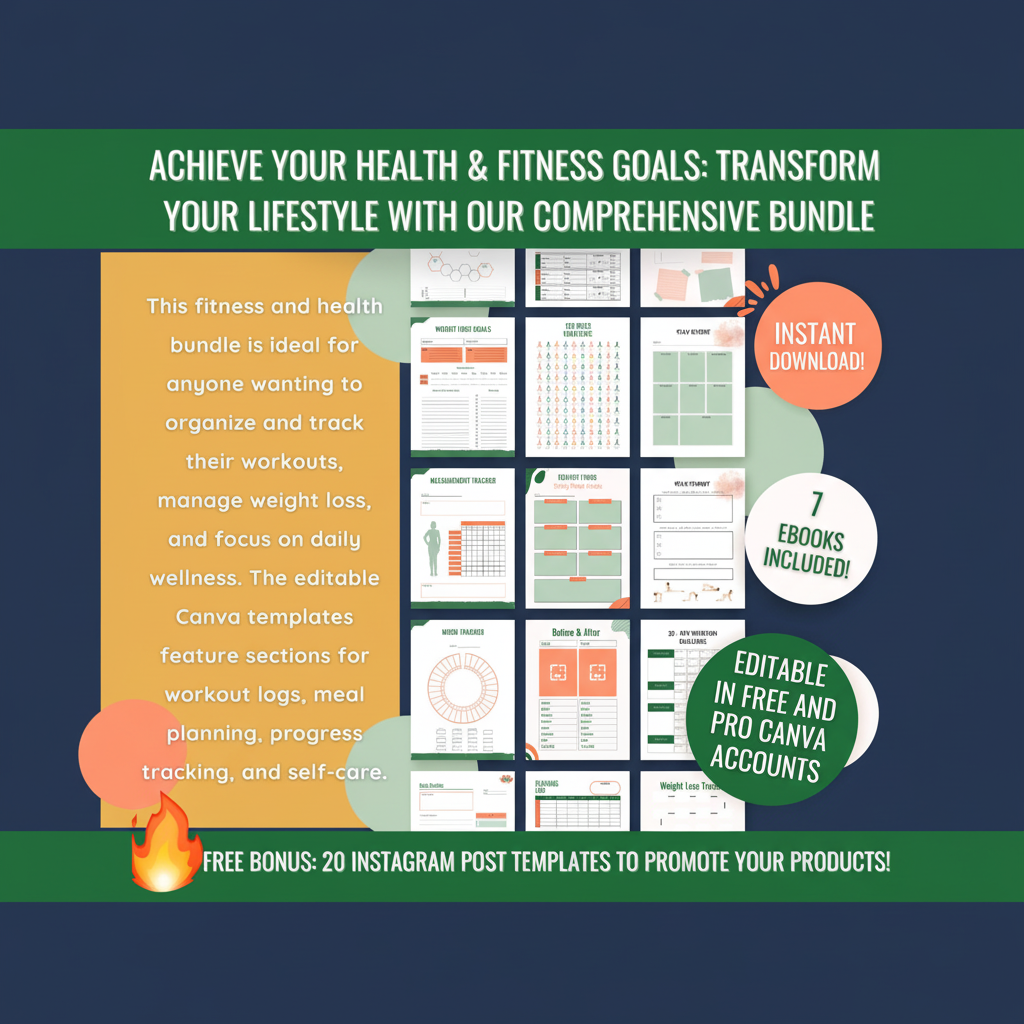 ➤ This all-in-one Fitness and Health Bundle gives you everything you need to track workouts, plan meals, monitor progress, and maintain a healthier lifestyle. Stay consistent, motivated, and on track to achieve your wellness goals.