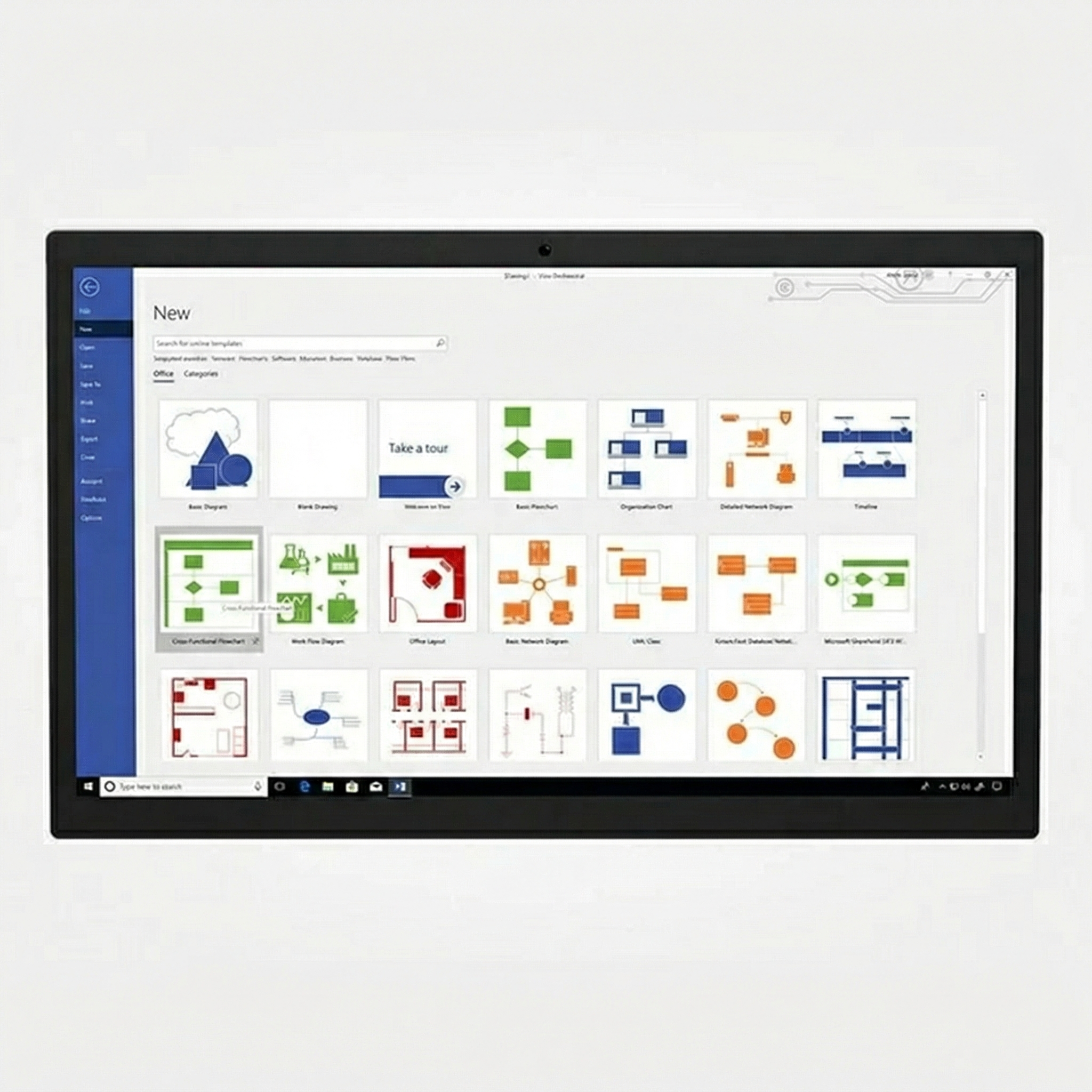 Design flowcharts, network diagrams, organizational charts, floor plans, and process maps using professionally designed templates and shapes.